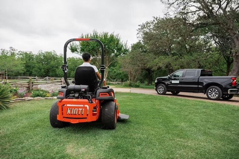 | KIOTI ZXD72 diesel zero-turn mower with 72" deck. A whisper-quiet KIOTI diesel engine fed by a massive 17.1 gallon fuel tank. |