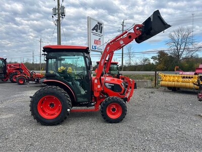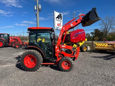 The KIOTI DK4720SEH is a 47 horsepower compact tractor with a factor installed cab, hydrostatic transmission, rear hitch, and rear hydraulic...
