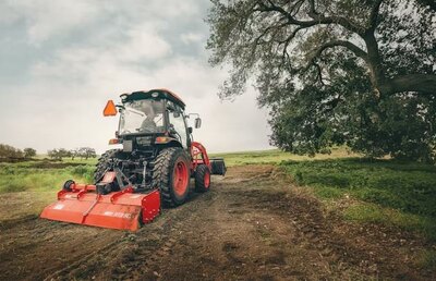KIOTI's DK5320HSE compact tractor with hydrostatic transmission, independent rear & mid PTO, wet disk breaks, 14.5" ground clearance, and...